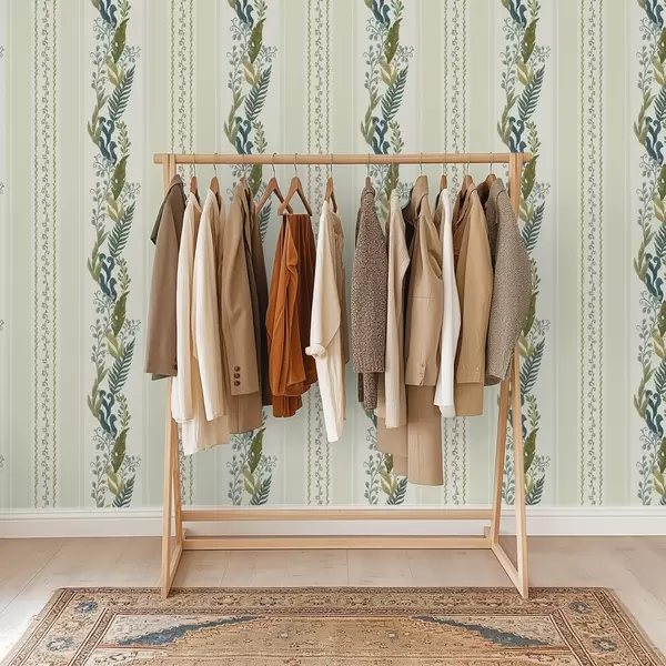 Tapety Szerokie paski z malarskimi gałęziami w odcieniach niebiesko-oliwkowych Nr. a00825