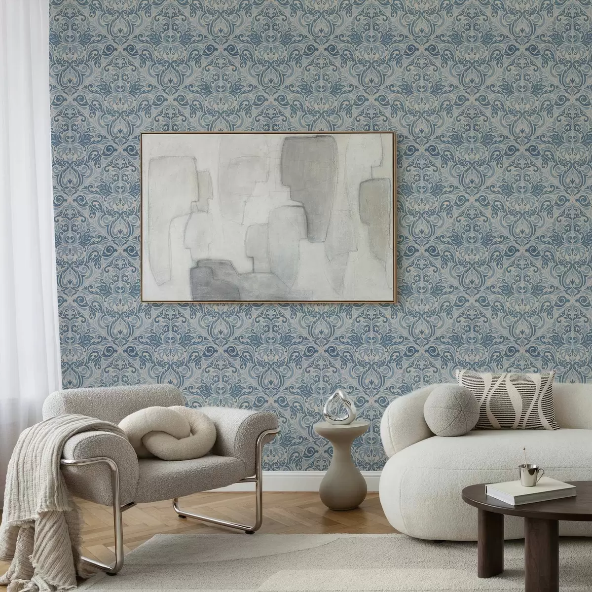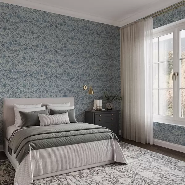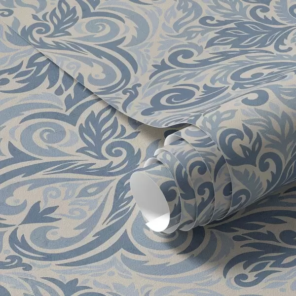 Tapety Klasyczny adamaszek, niebieskie motywy na kremowym tle Nr. a00826v1