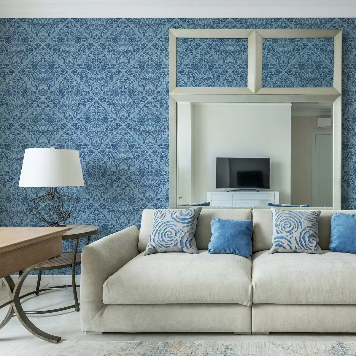 Tapety Damaszek w chłodnych odcieniach niebieskiego, silniejszy kontrast Nr. a00826v2