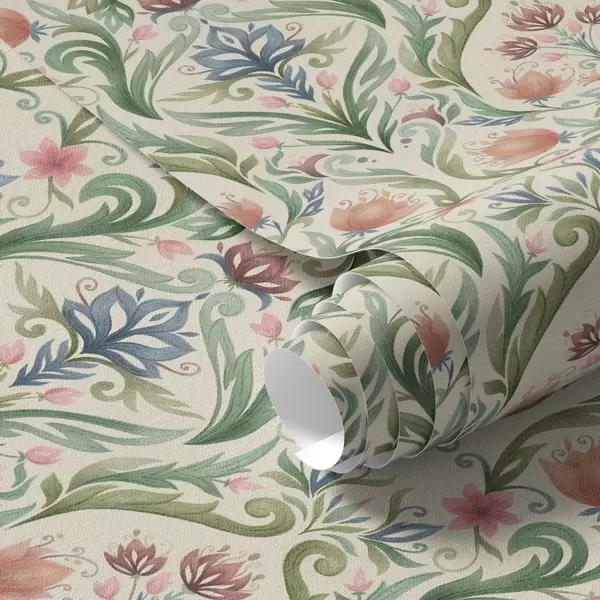 Tapety Symetryczny ornament kwiatowy, terakota i zieleń Nr. a00827