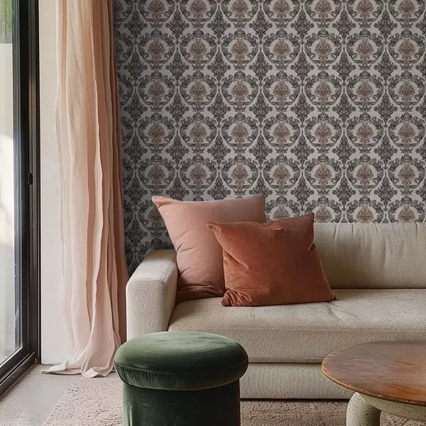 Tapety Damaszek z miedziano-brązowymi akcentami na jasnym tle Nr. a00828v4