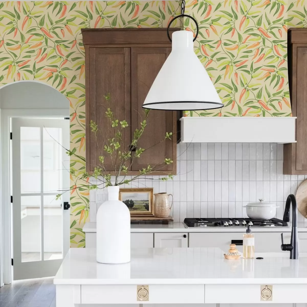 Tapety Gałęzie z czerwonymi i zielonymi paprykami na ciepłym tle Nr. a00829