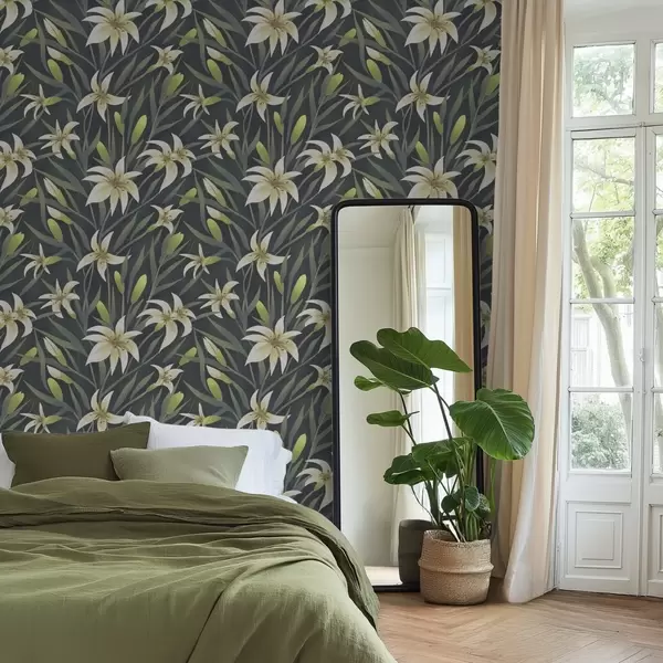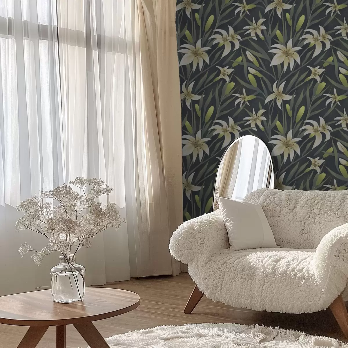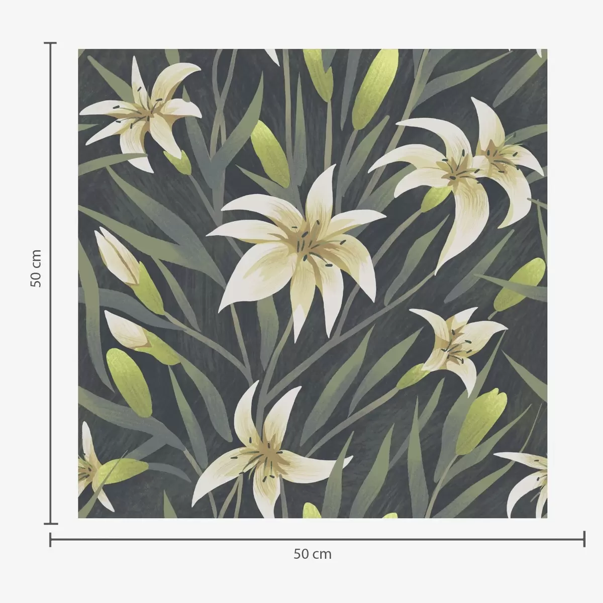 Tapety Kremowe lilie z liśćmi na ciemnym tle Nr. a00837v1