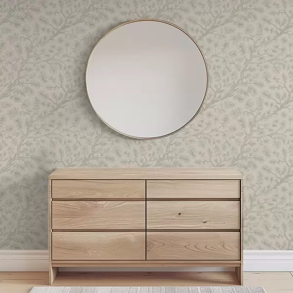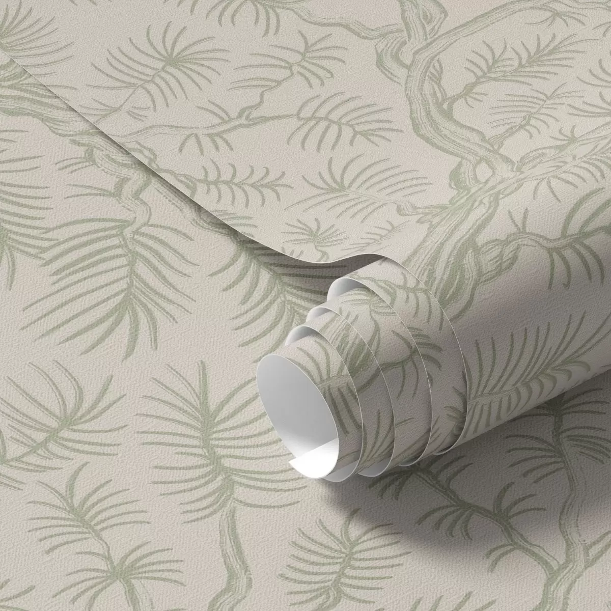 Tapety Gałęzie sosny w jasnozielonych odcieniach na beżowym tle Nr. a00838v1