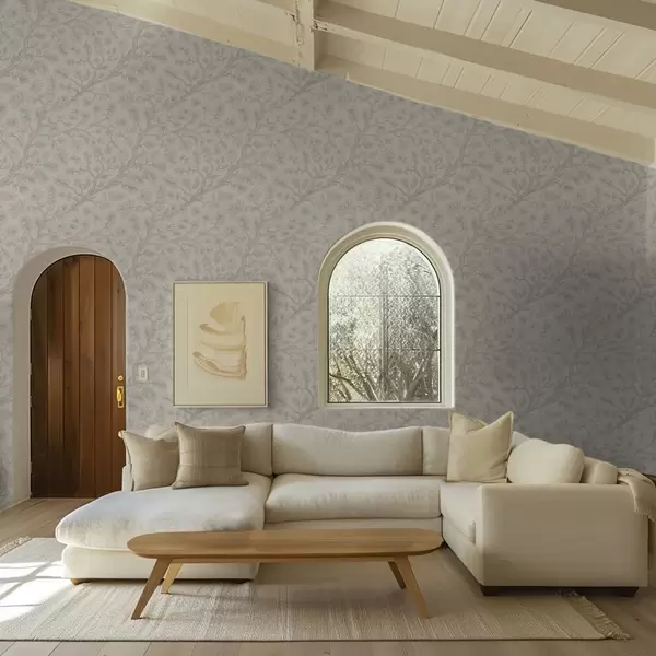 Tapety Gałęzie sosny w jasnozielonych odcieniach na beżowym tle Nr. a00838v1