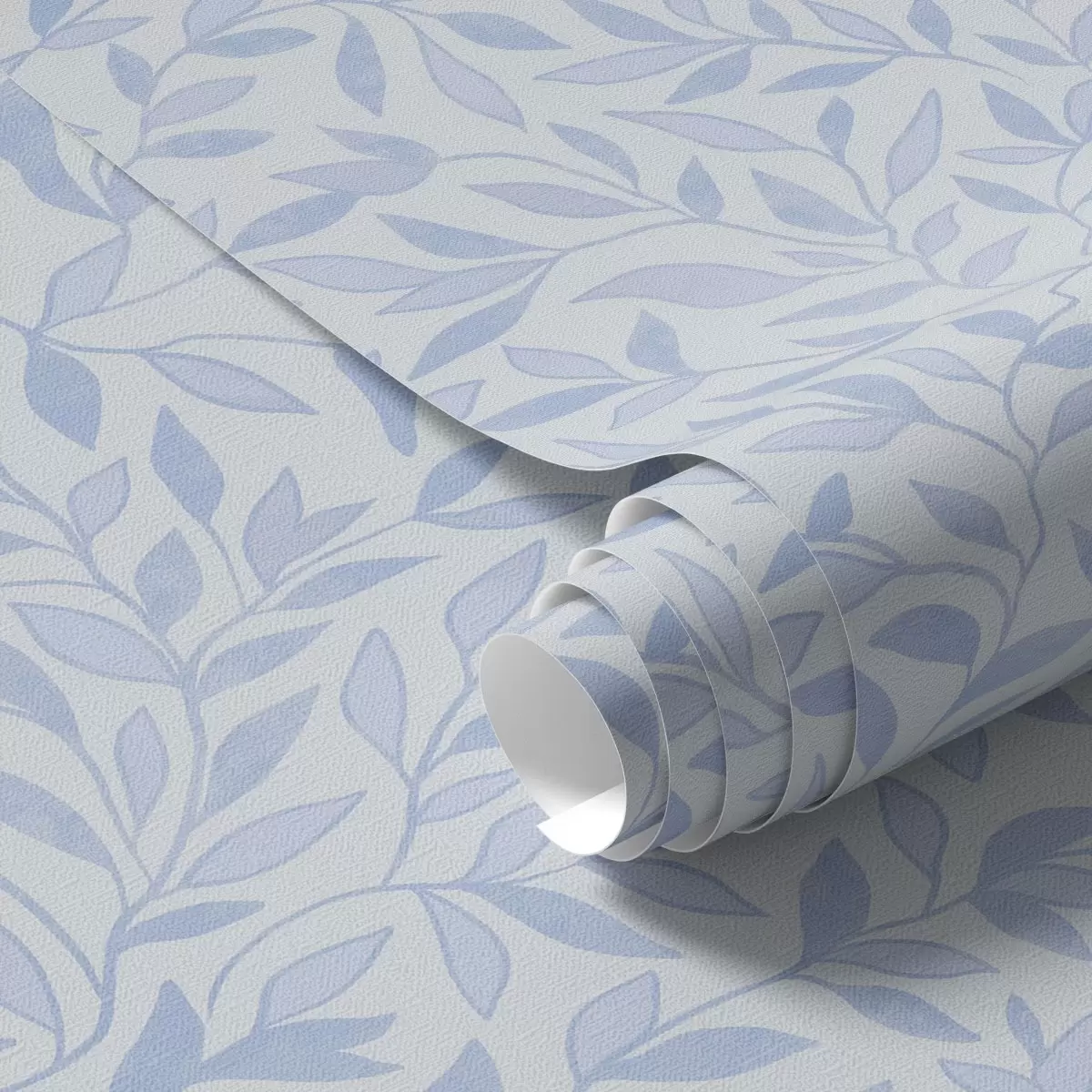 Tapety Niebieskie gałązki z liśćmi na jasnoniebieskim tle Nr. a00842