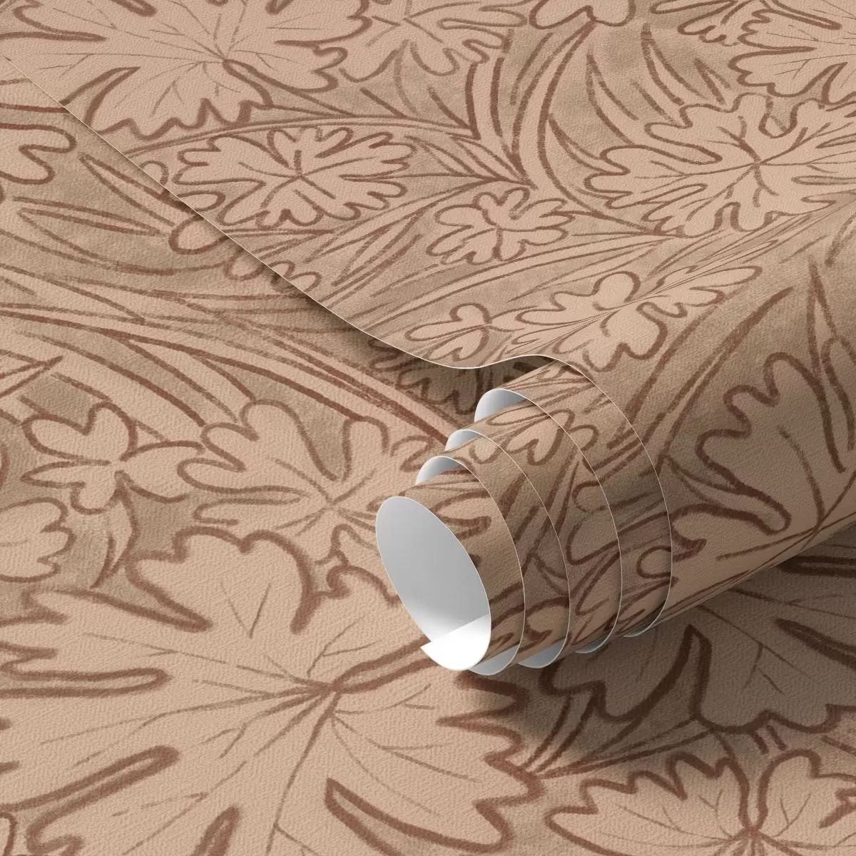 Tapety Liście polne i trawy w palecie kolorów terakota-beż Nr. a00847