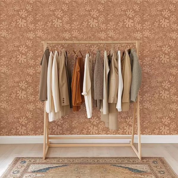 Tapety Liście polne i trawy w palecie kolorów terakota-beż Nr. a00847