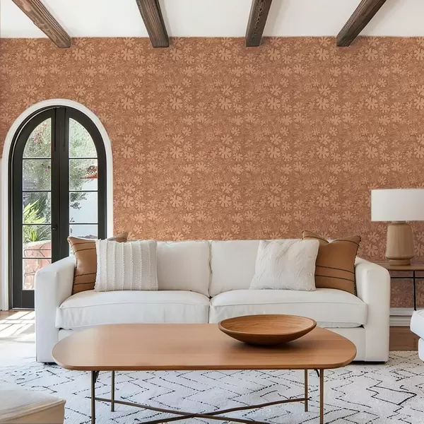 Tapety Liście polne i trawy w palecie kolorów terakota-beż Nr. a00847