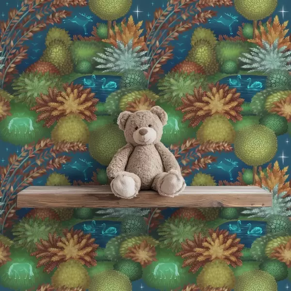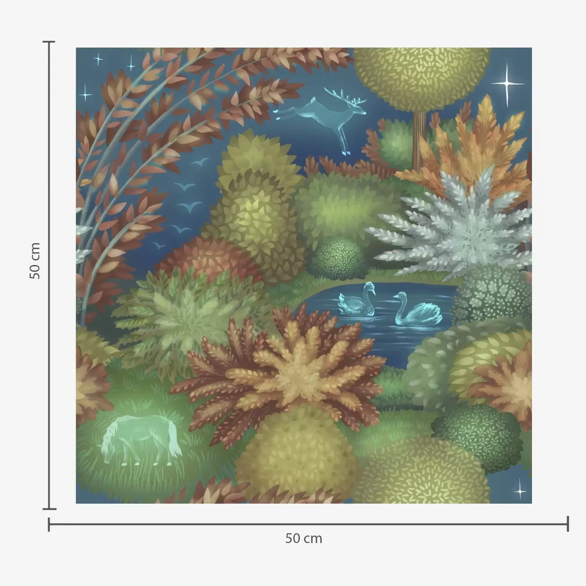 Tapety Bajkowy nocny ogród z jeziorem i świecącymi zwierzętami Nr. a00851