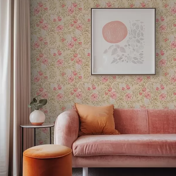 Tapety Różowe kwiaty, białe kwiaty i liście w odcieniach ochry Nr. a00855