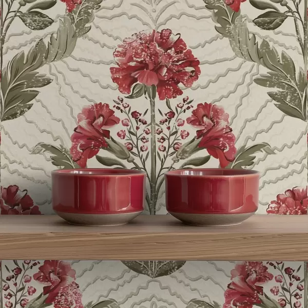 Tapety Duże czerwone piwonie na graficznym tle, kremowy podkład Nr. a00857