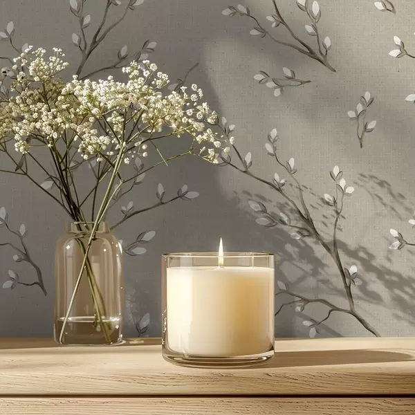 Tapety Gałązki z białymi pąkami na tle w kolorze szarym Nr. a00861