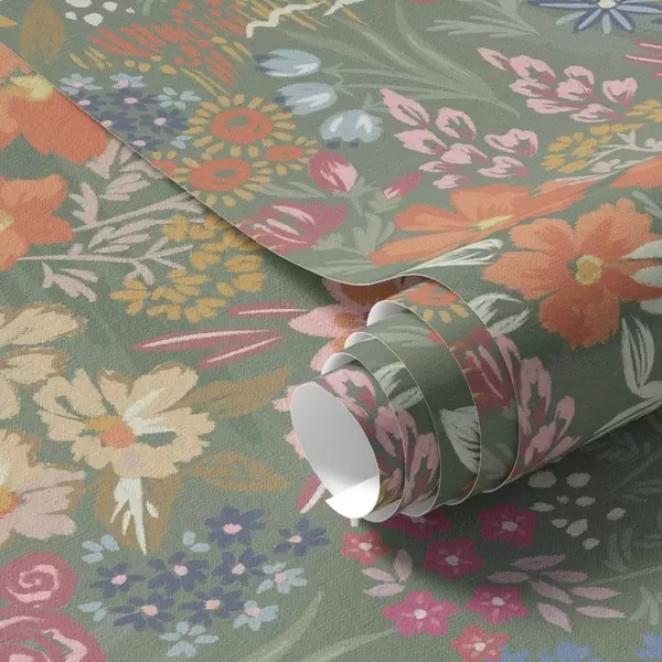 Tapety Malarskie kwiaty łąkowe na szałwiowej zieleni Nr. a00864