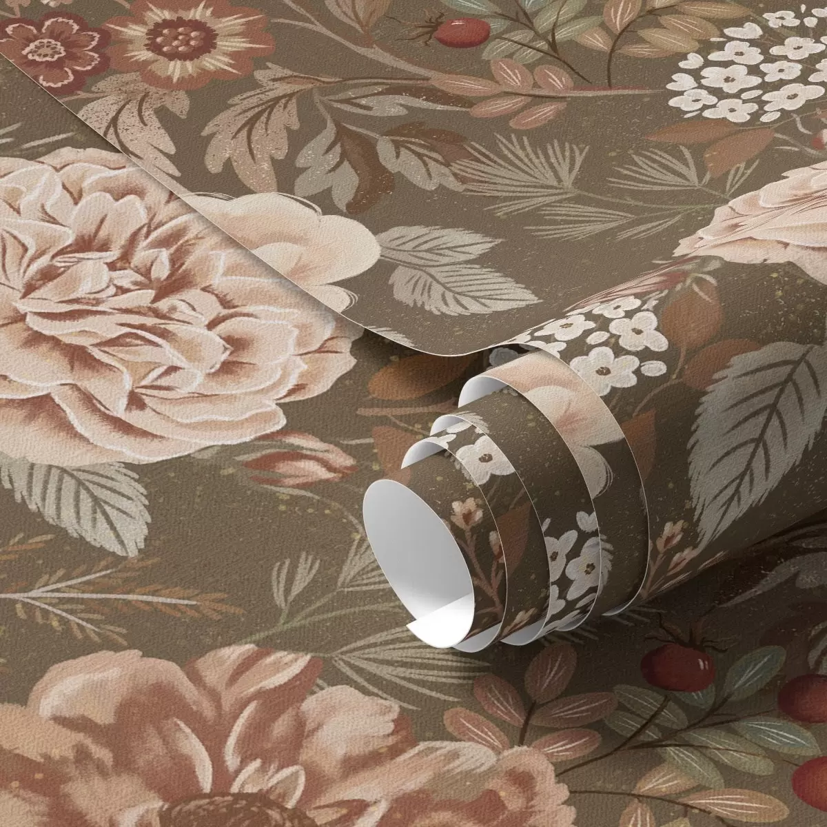 Tapety Ciepłe róże i jagody na brązowym tle Nr. a00868