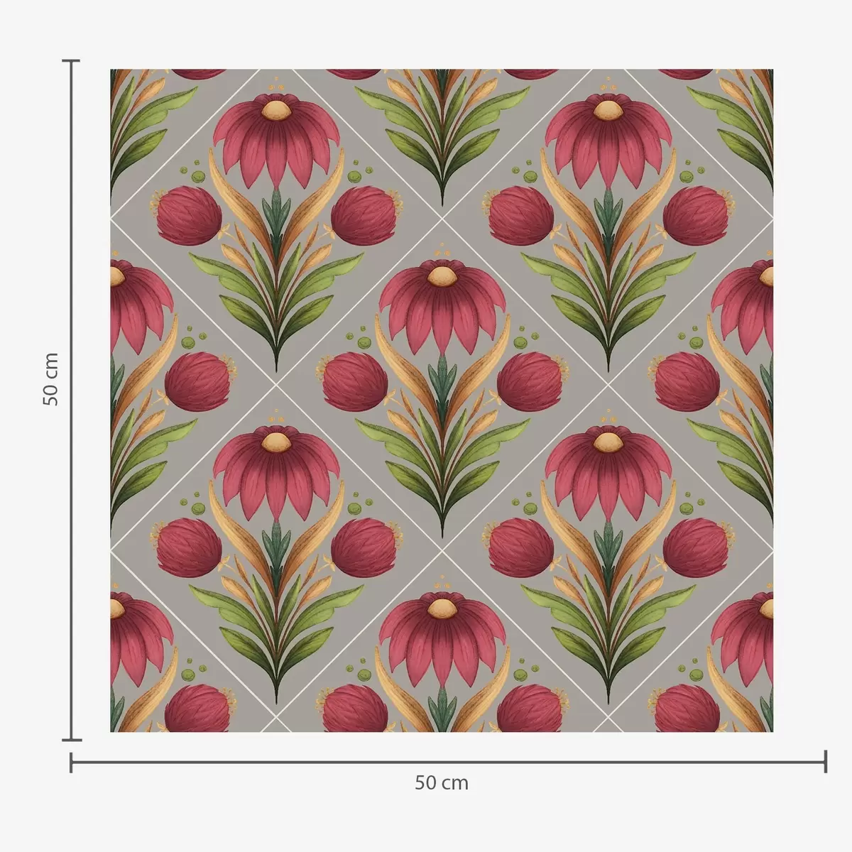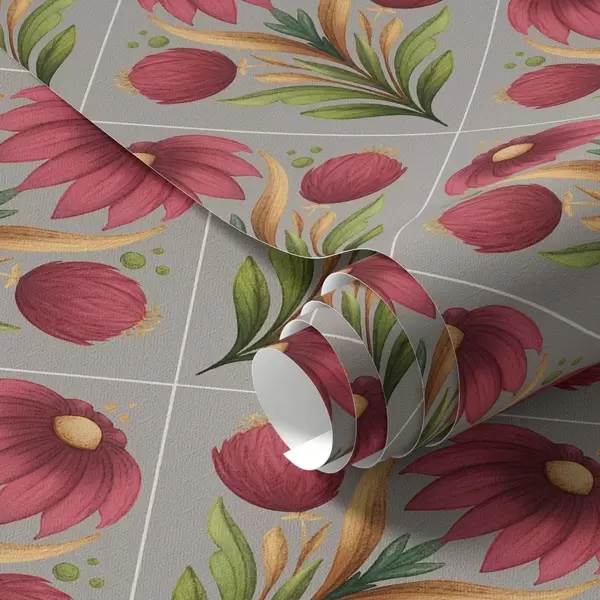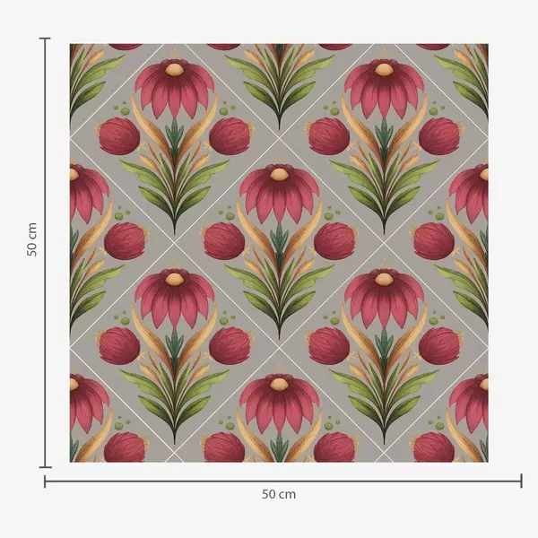 Tapety Symetryczny ornament kwiatowy na szarym tle z ukośnymi liniami Nr. a00869