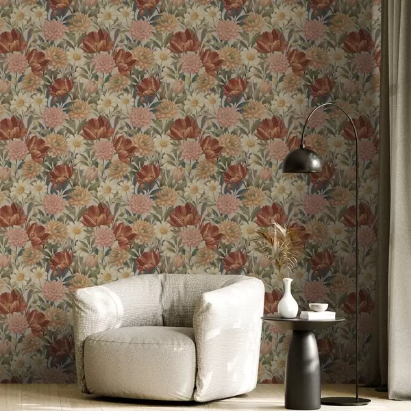 Tapety Kwiaty w stylu vintage w ciepłych odcieniach terakoty i brzoskwini Nr. a00874