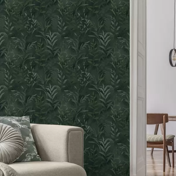 Tapety Ciemnozielone tło z półprzezroczystymi gałęziami liści Nr. a00888