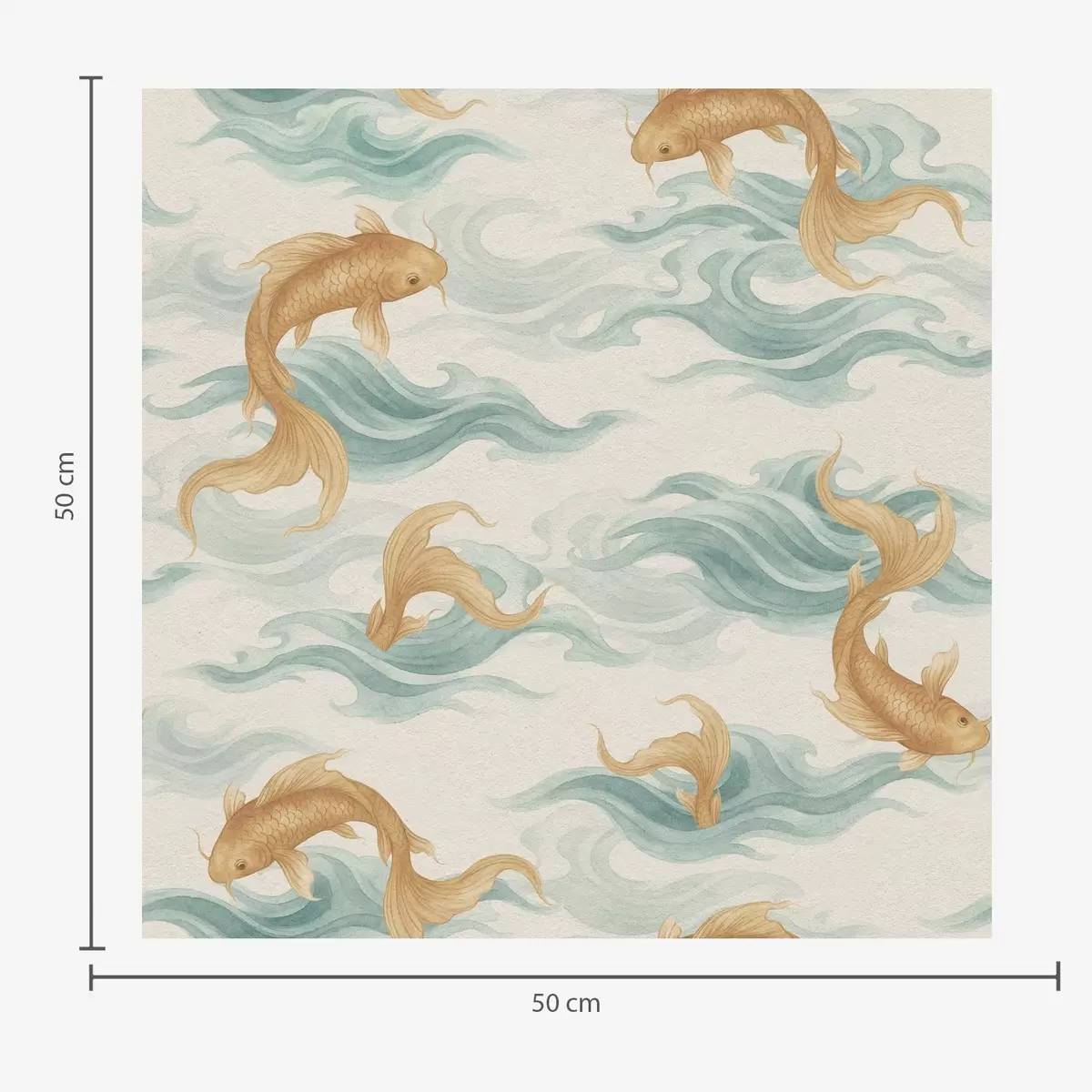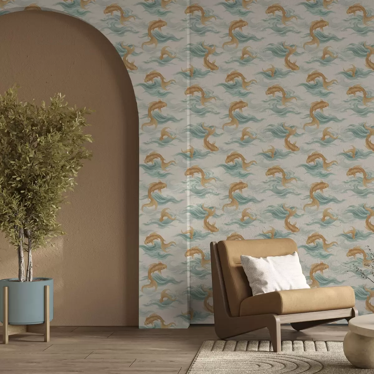 Tapety Bursztynowa ryba koi pływająca wśród delikatnych turkusowych fal Nr. a00894