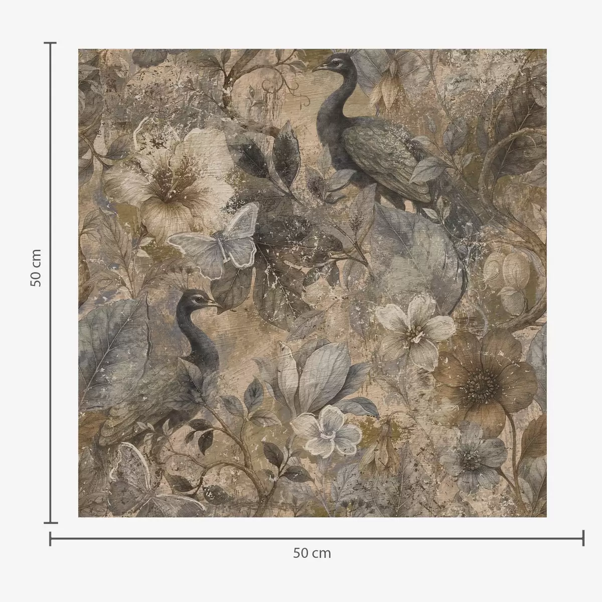 Tapety Postarzana kwiatowa kolaż z pawiami i motylami Nr. a00897