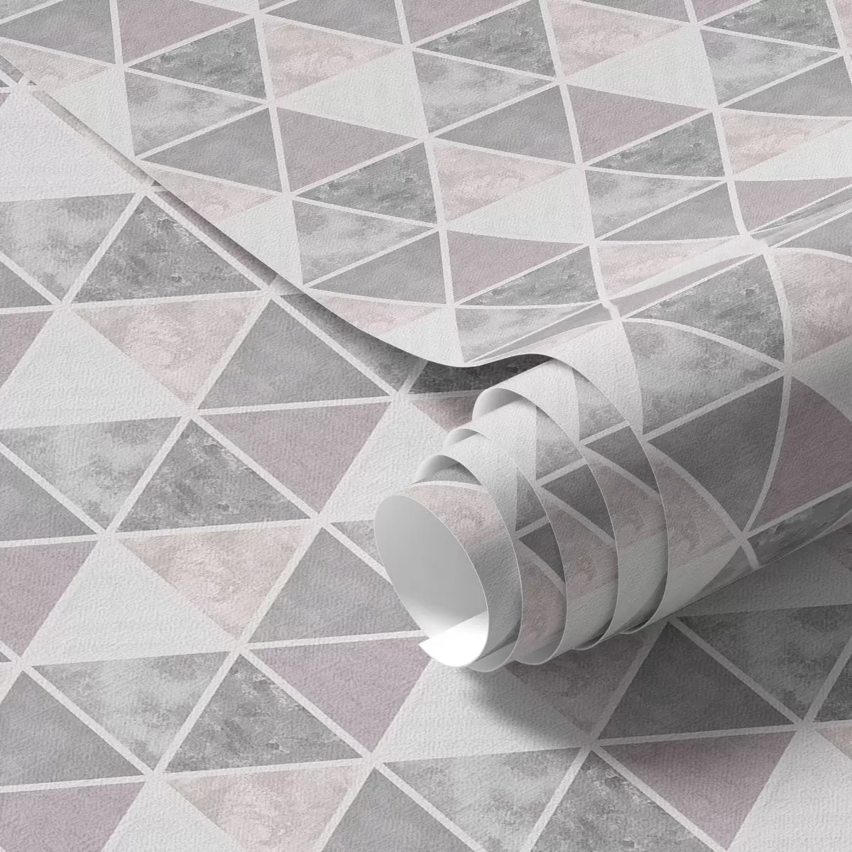 Tapety Geometryczny wzór trójkątów w odcieniach szarości i pudrowych barwach Nr. a00920