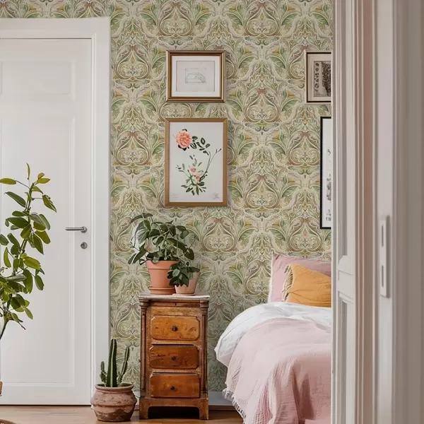 Tapety Akwarelowe liściaste zawirowania w odcieniach zieleni i ciepłej ochry Nr. a00927
