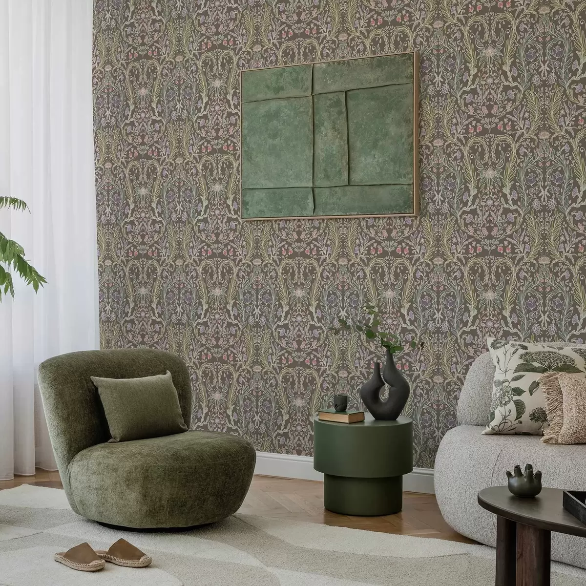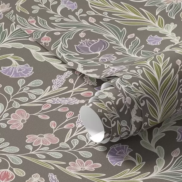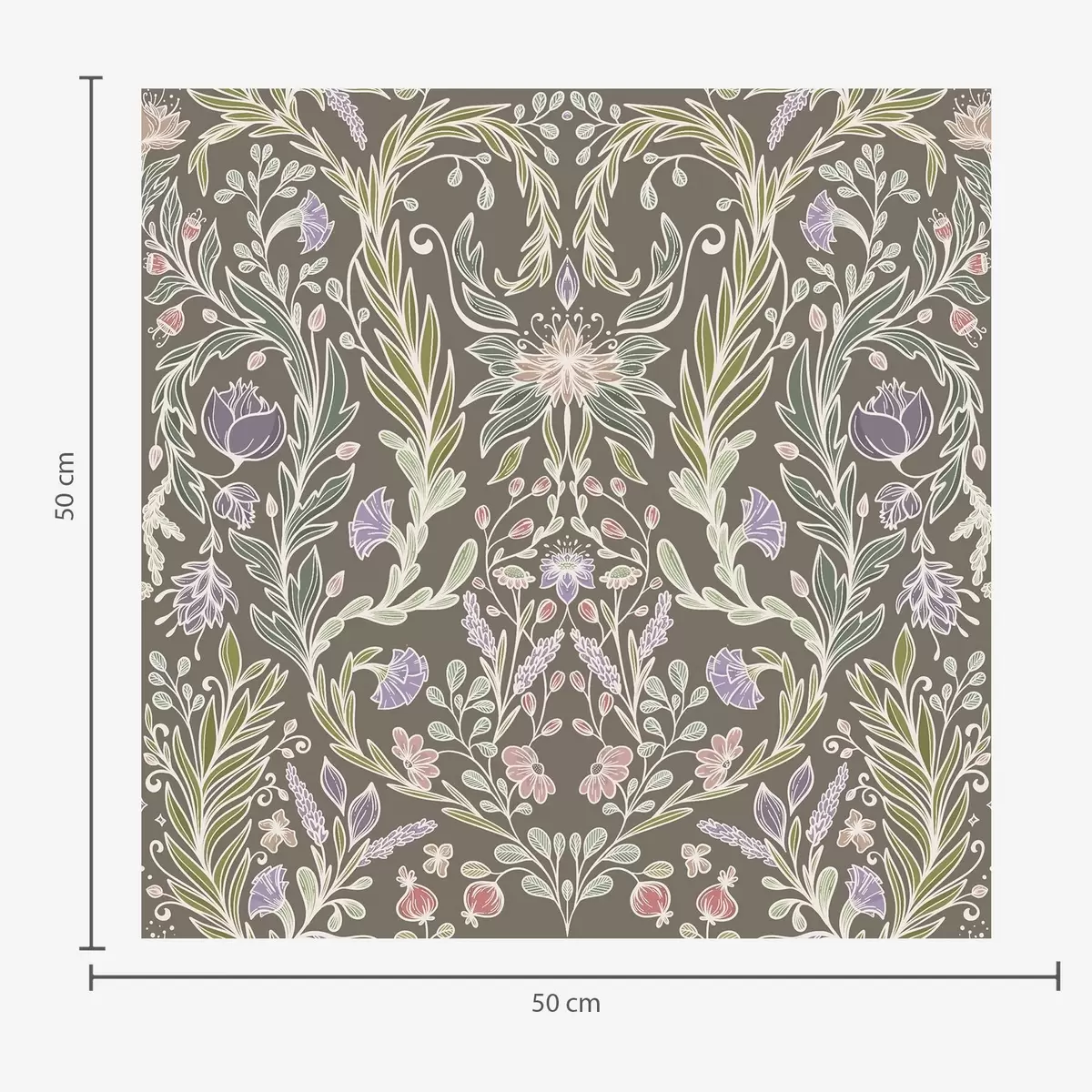 Tapety Symetryczne kwiaty i liście na brązowo-szarym tle Nr. a00928v2