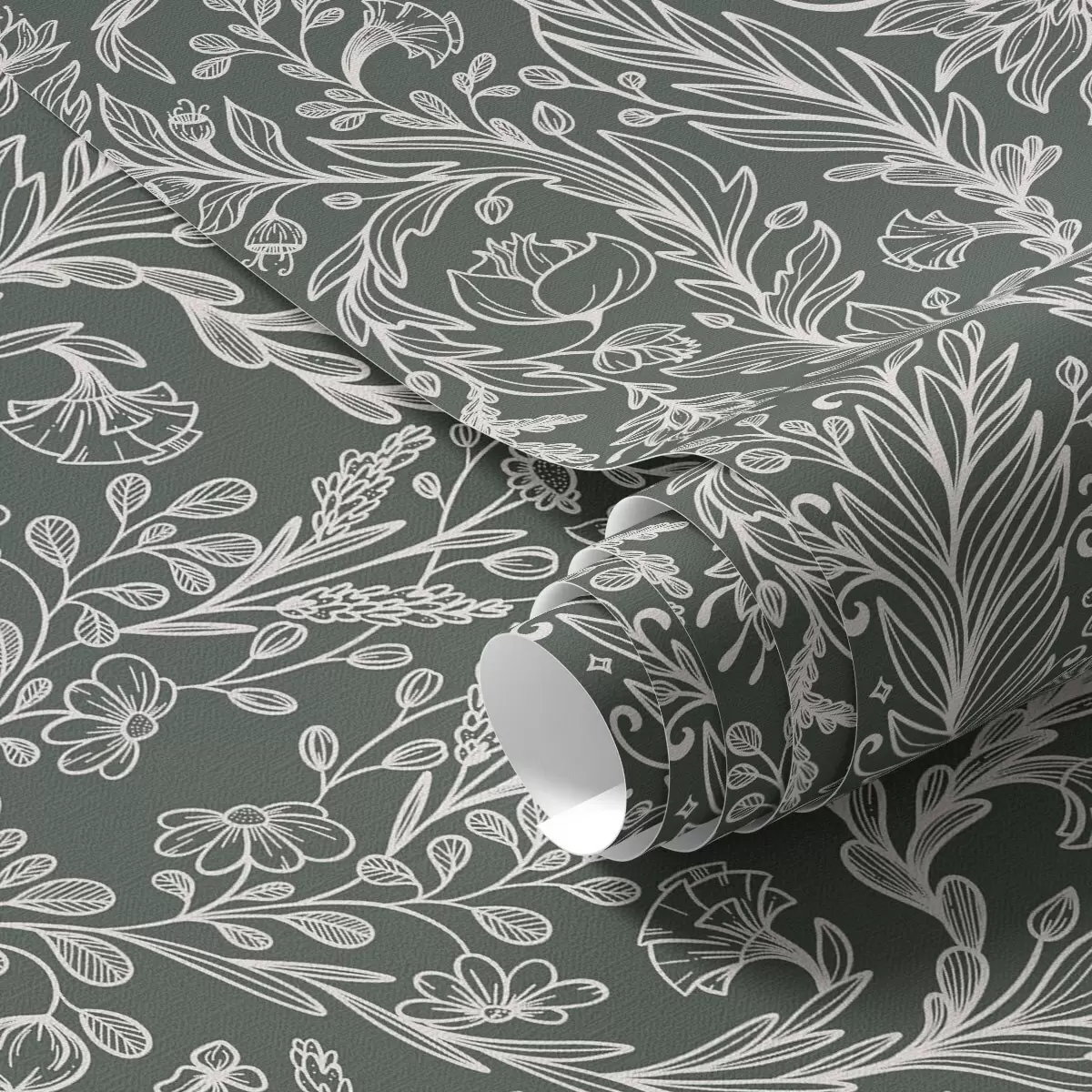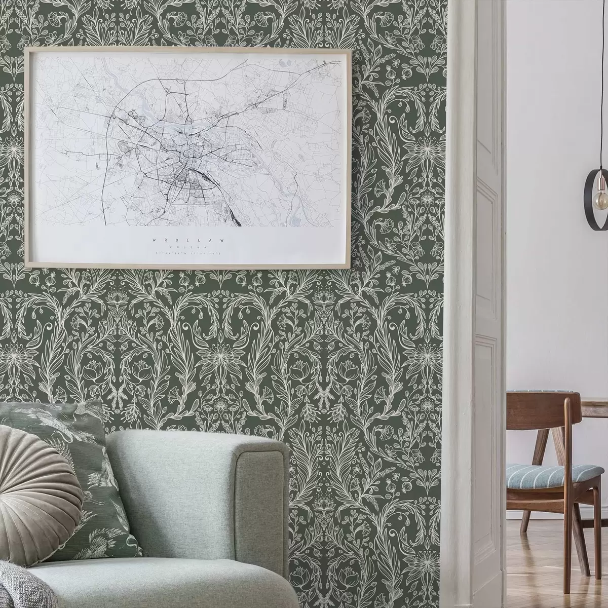 Tapety Liniowy wzór kwiatowy na ciemnozielonym tle Nr. a00929