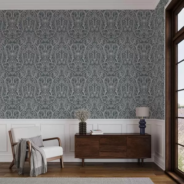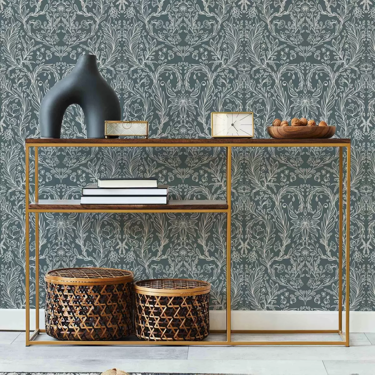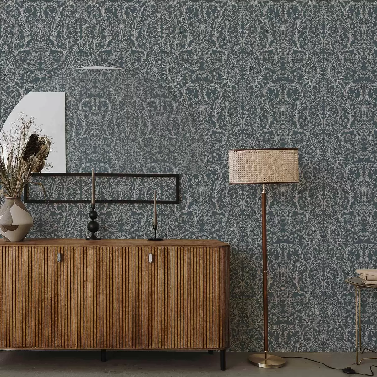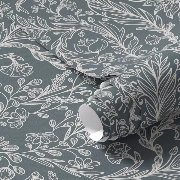 Tapety Liniowy ornament kwiatowy na niebieskawo-szarym tle Nr. a00929v1