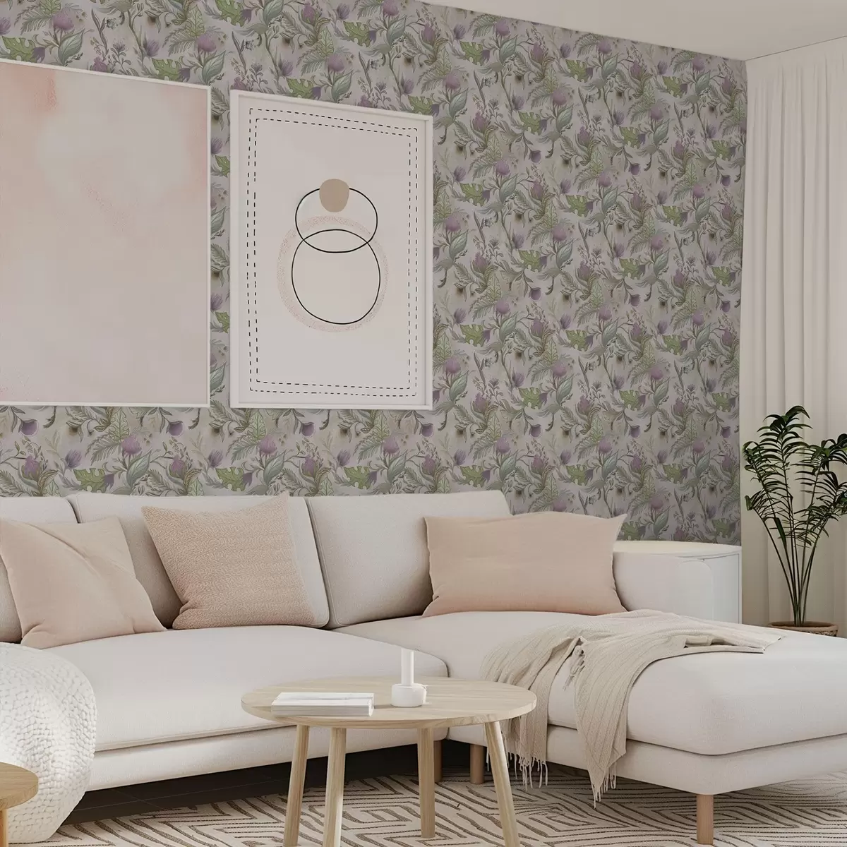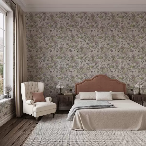 Tapety Liliowe kwiaty polne i liście na pudrowym tle Nr. a00930v3