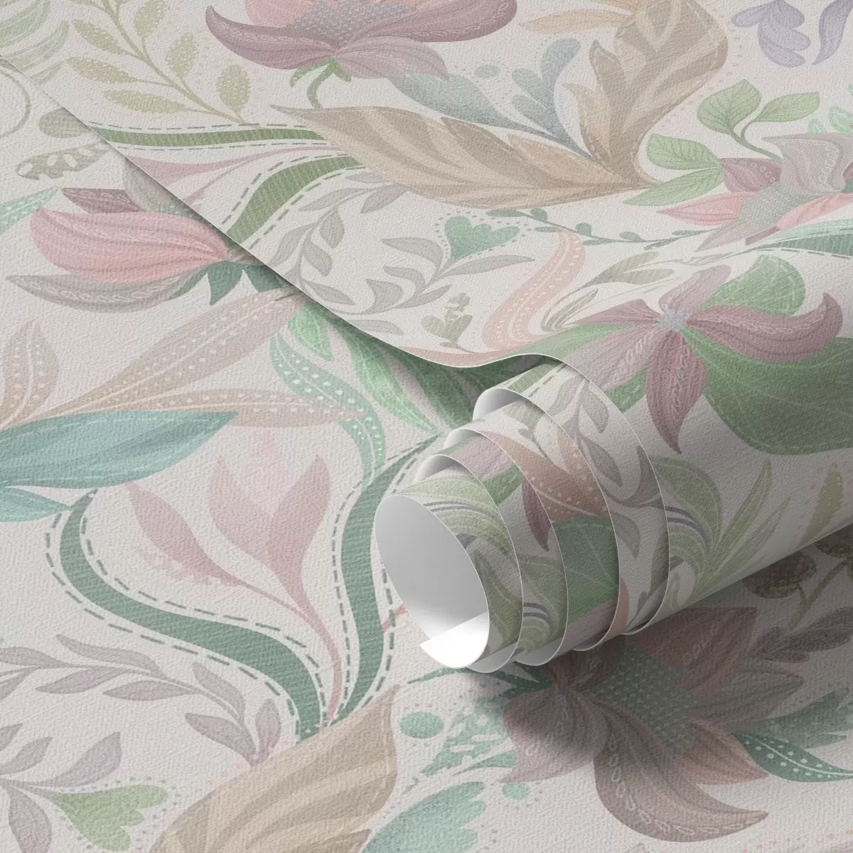 Tapety Delikatne pastelowe kwiaty i liście na jasnym tle Nr. a00931