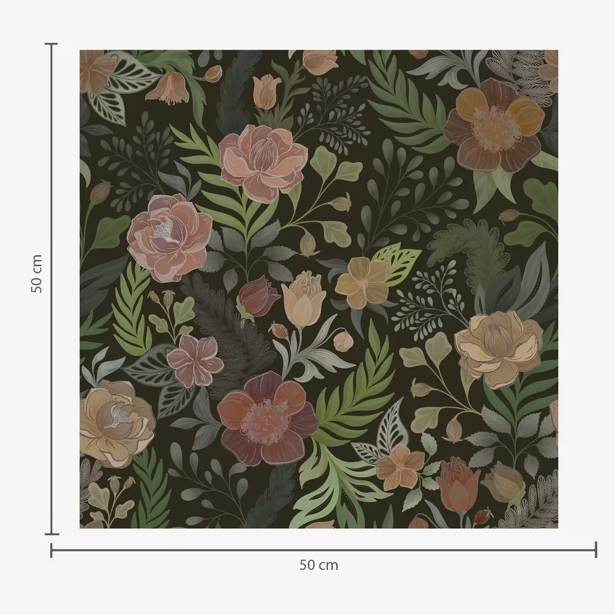 Tapety Bogate kwiaty i zieleń na głębokim, ciemnym tle Nr. a00932
