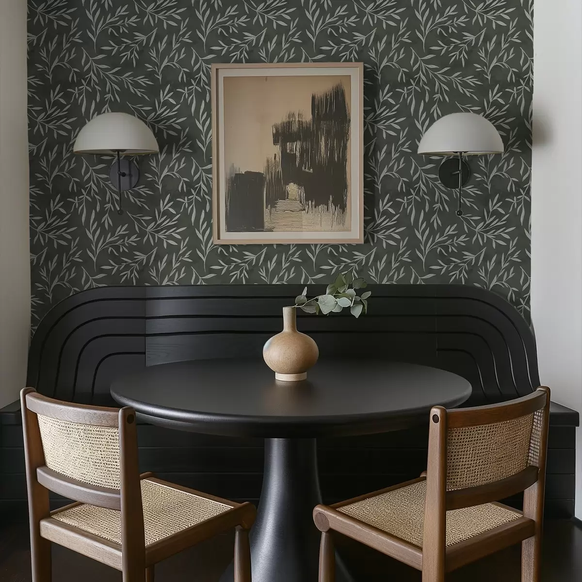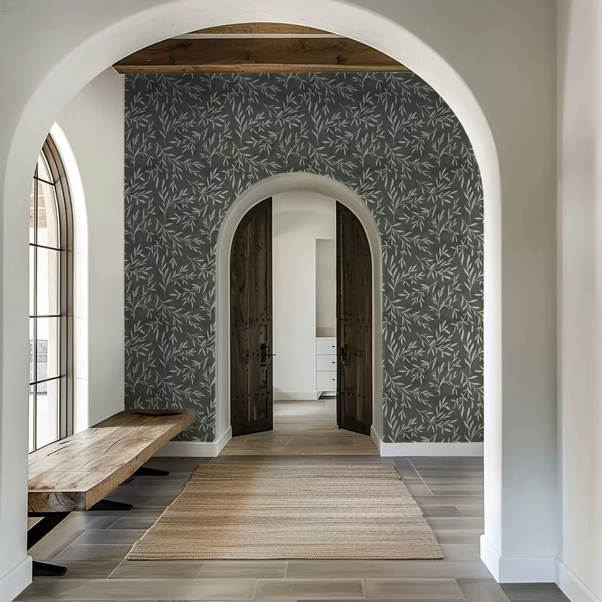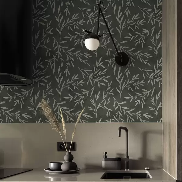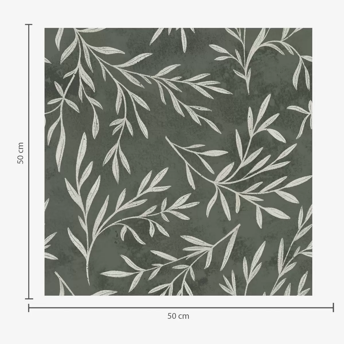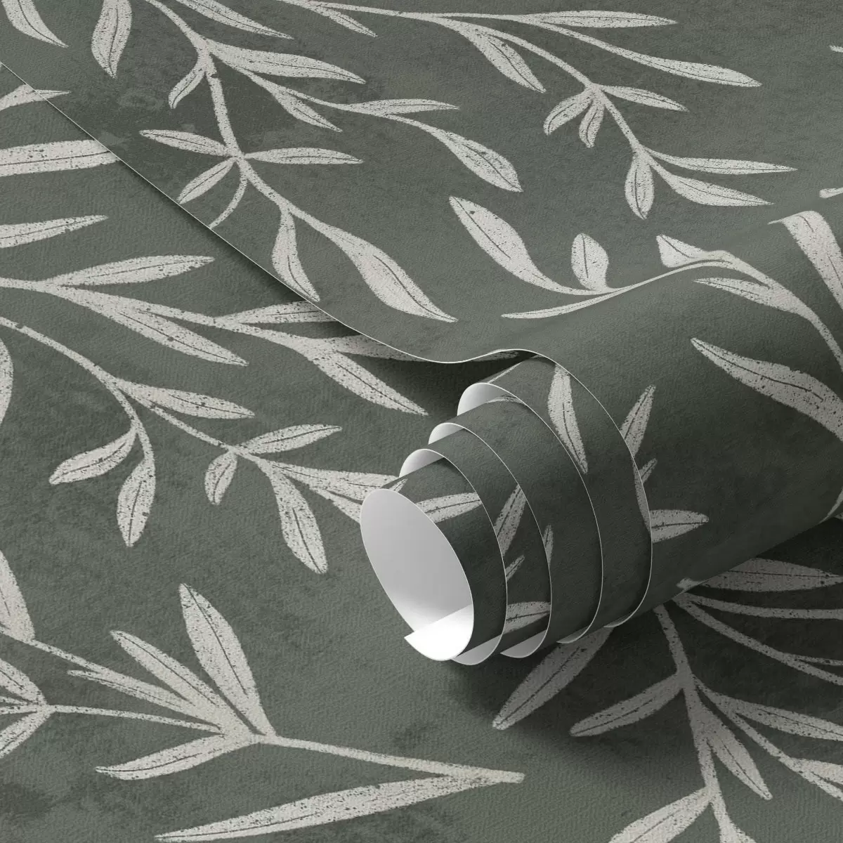 Tapety Naszkicowane białe gałęzie na tle głębokiej szałwiowej zieleni Nr. a00936v2