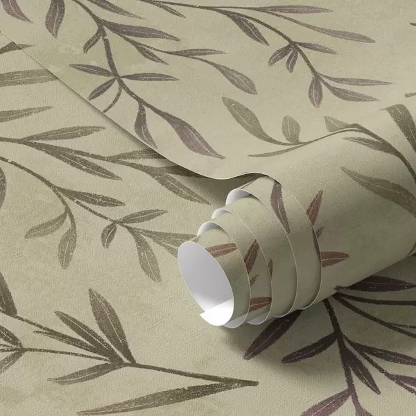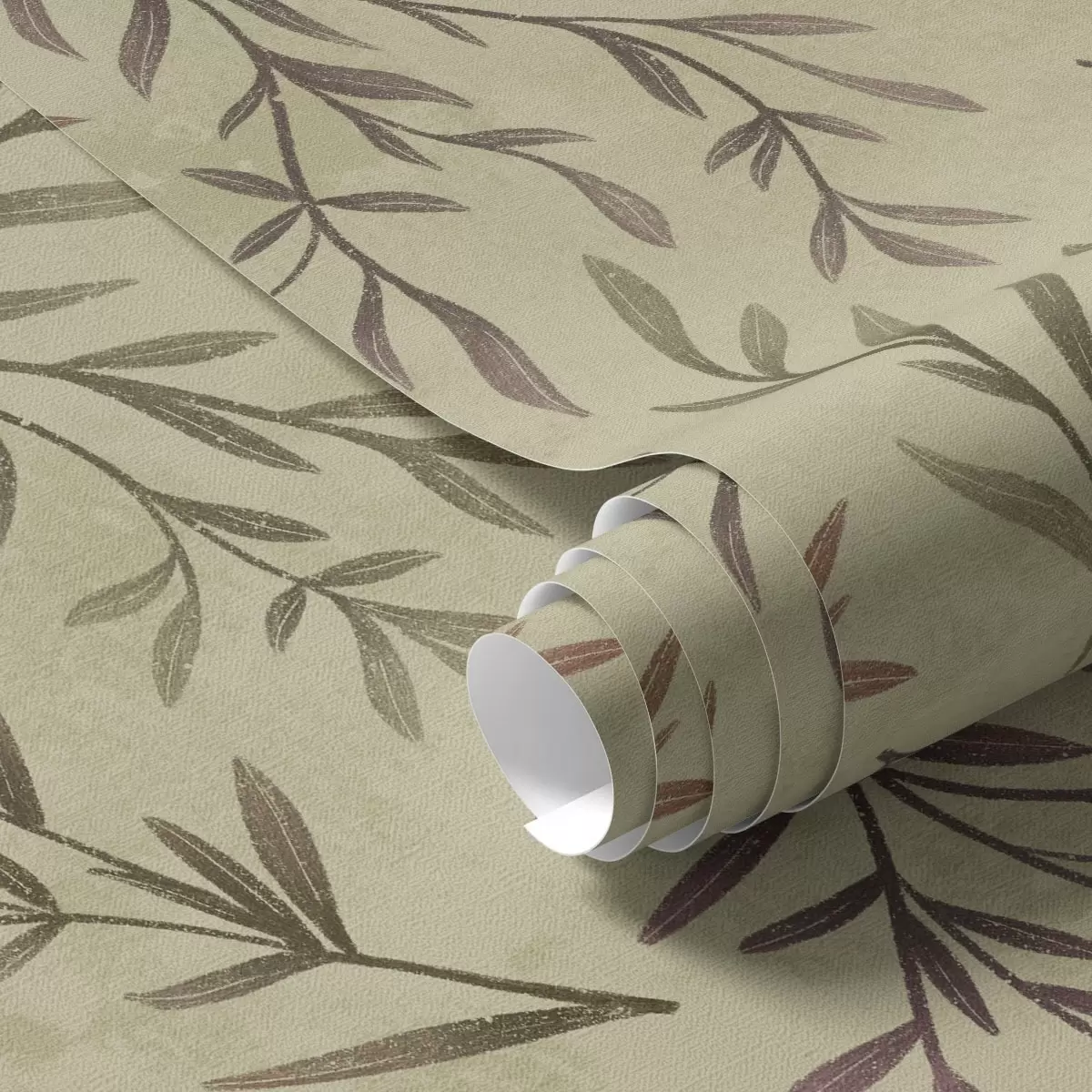 Tapety Liliowe i zielone gałęzie z liśćmi na ciepłym tle Nr. a00936v4