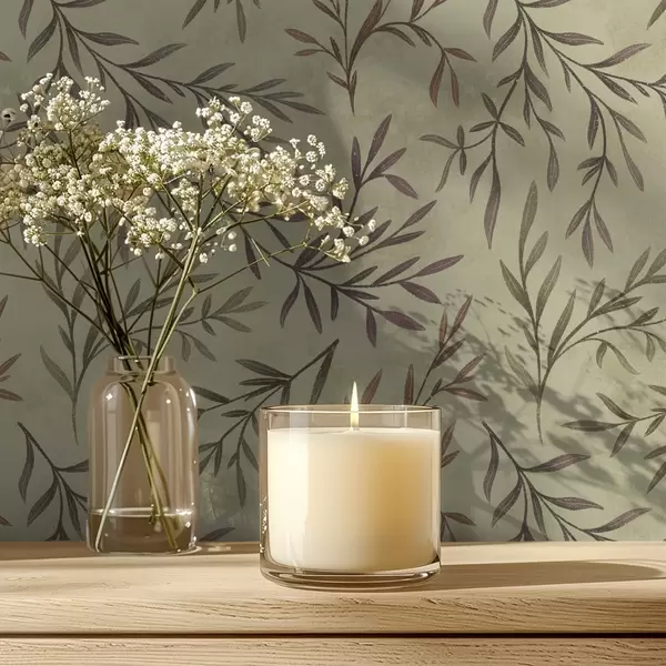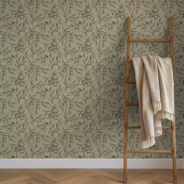 Tapety Liliowe i zielone gałęzie z liśćmi na ciepłym tle Nr. a00936v4