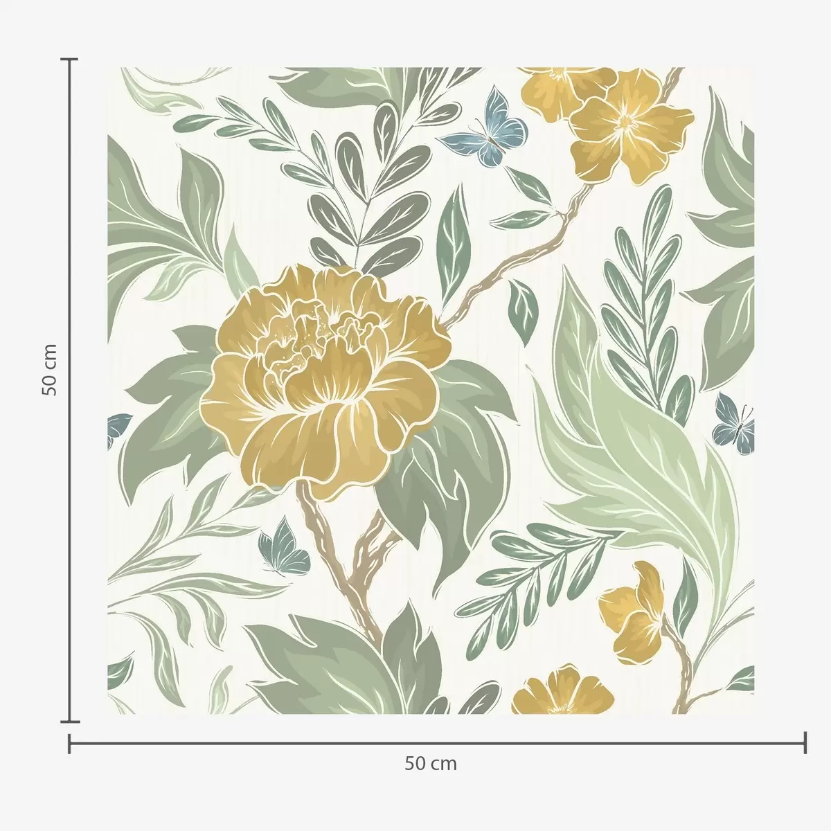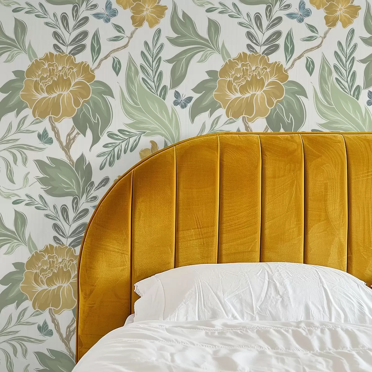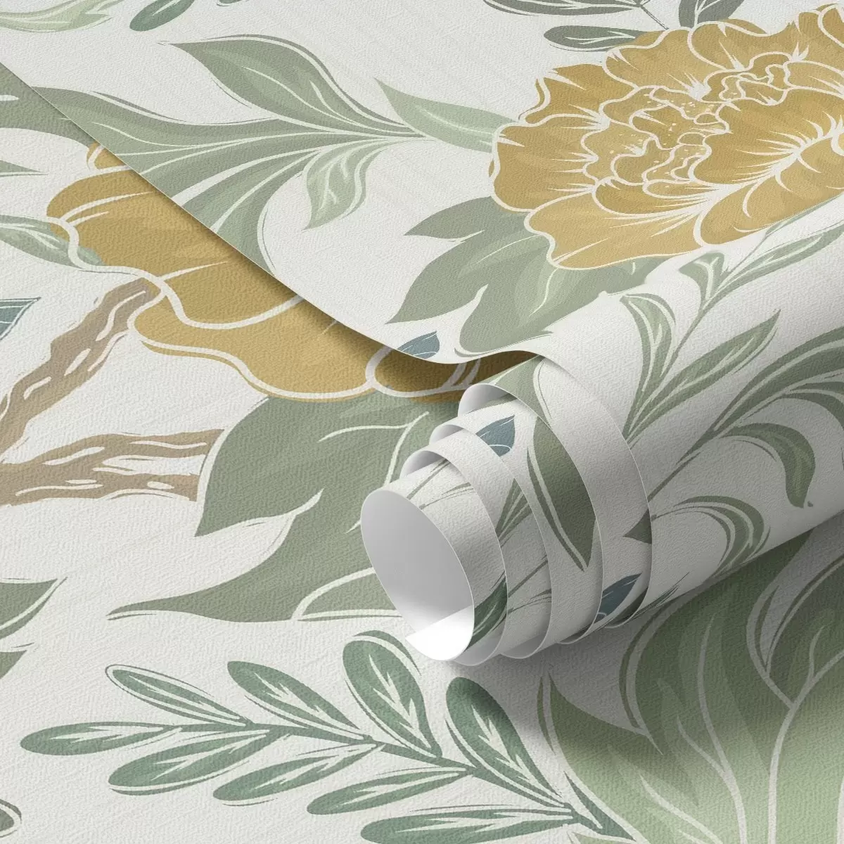 Tapety Duże żółte piwonie i zieleń na jasnym tle Nr. a00941
