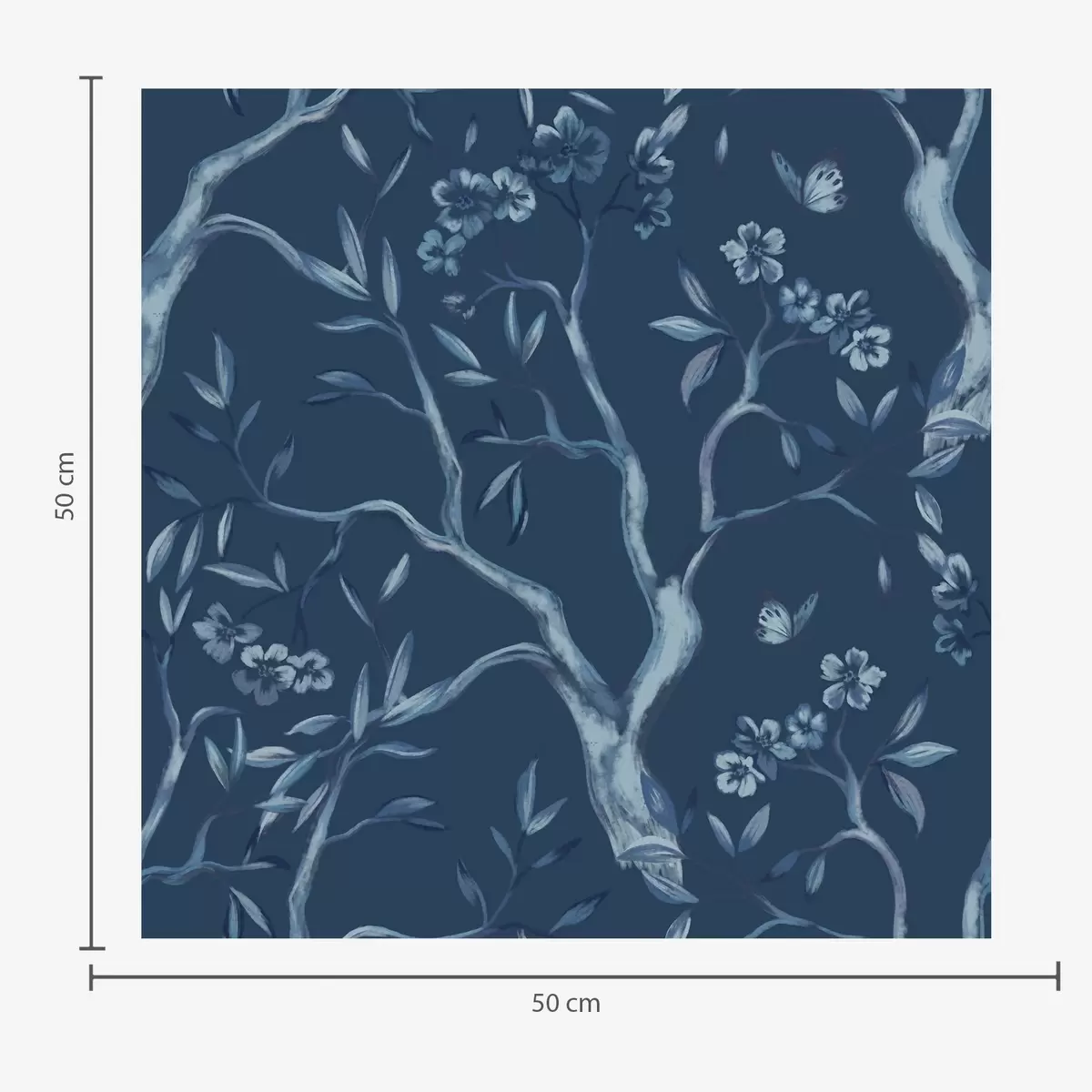 Tapety Niebieskie kwitnące gałęzie z motylami na ciemnym tle Nr. a00951v1