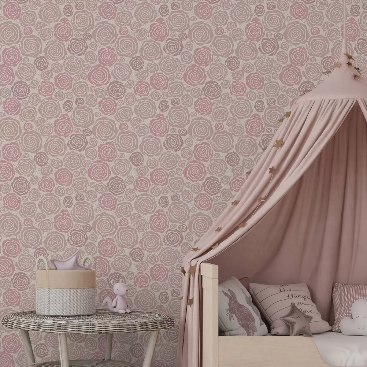 Tapety Spiralne różowe róże i plamy na jasnym tle Nr. a00955