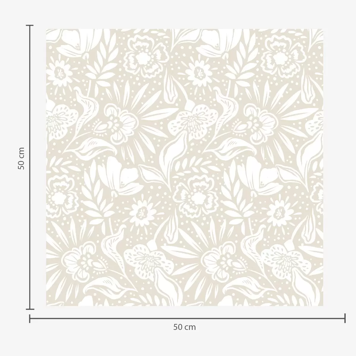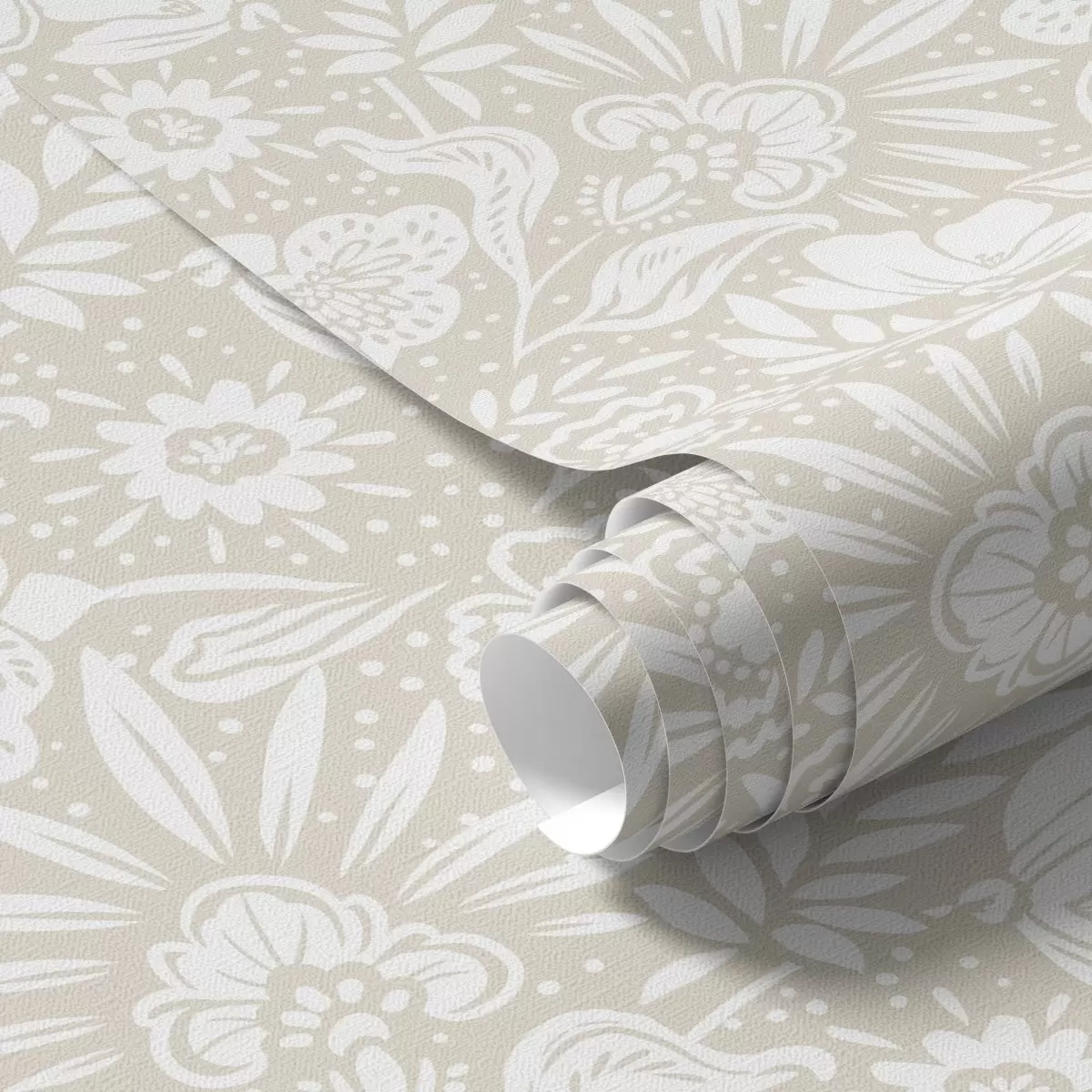Tapety Biały liniowy ornament kwiatowy na beżowym tle Nr. a00956