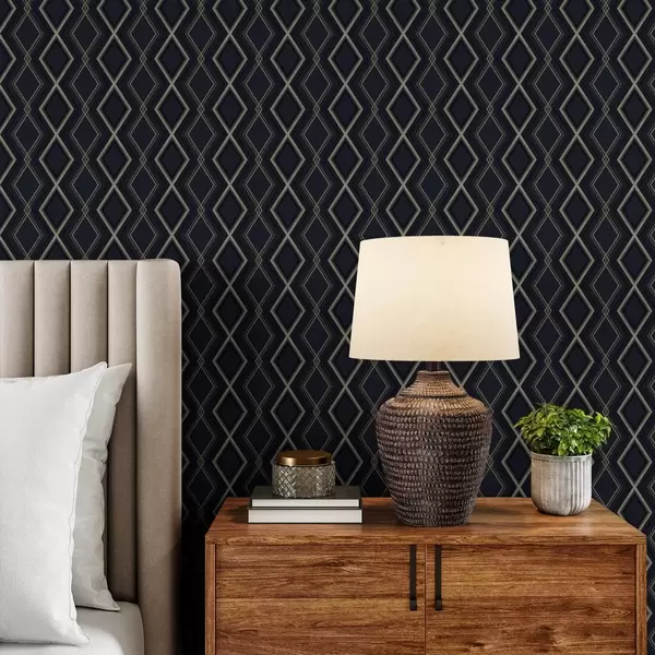Tapety Ciemnoniebieska siatka rombowa z cienkimi jasnymi liniami Nr. a00975