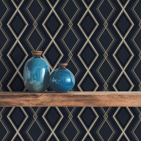 Tapety Ciemnoniebieska siatka rombowa z cienkimi jasnymi liniami Nr. a00975