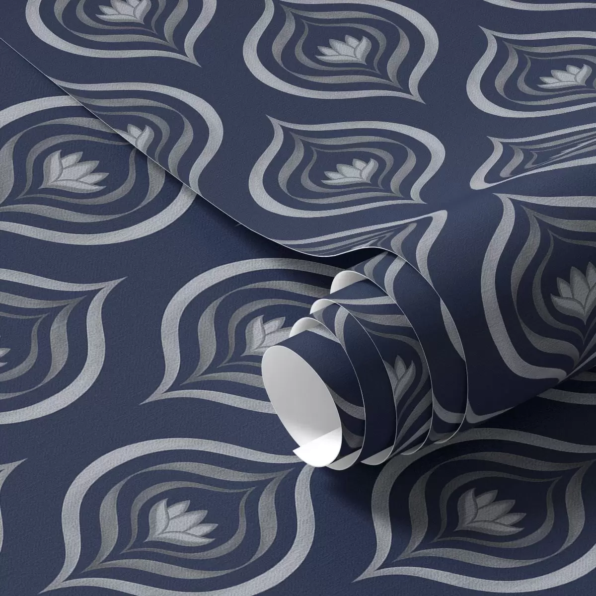 Tapety Kontrastujące motywy kropelek z kwiatem na ciemnoniebieskim tle Nr. a00977v1