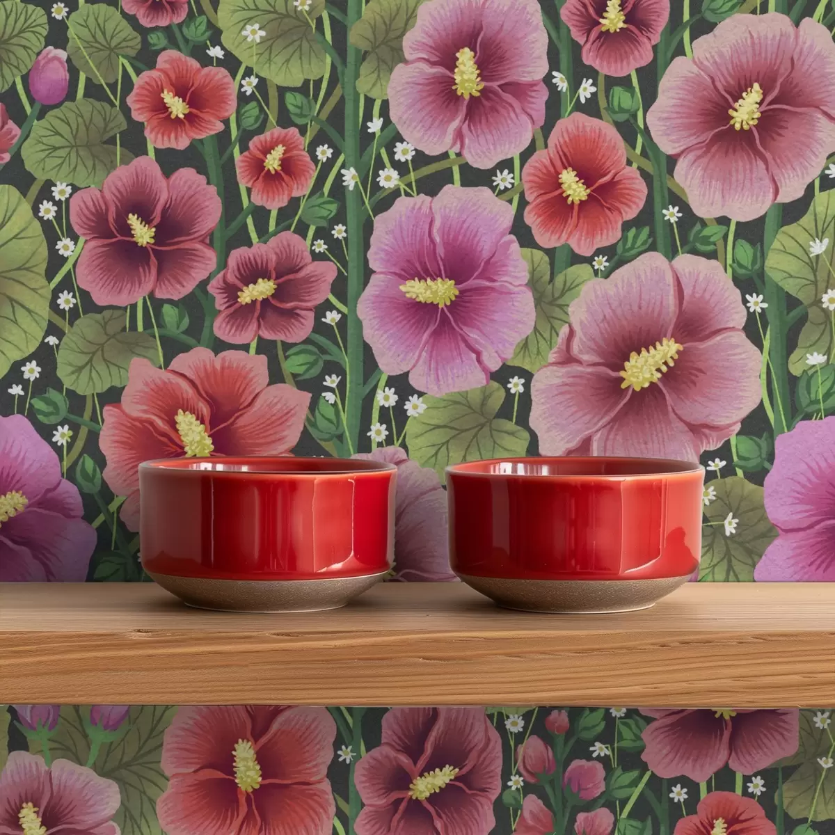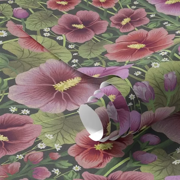 Tapety Jasne kwiaty hibiskusa i zieleń na ciemnym tle Nr. a00993v2
