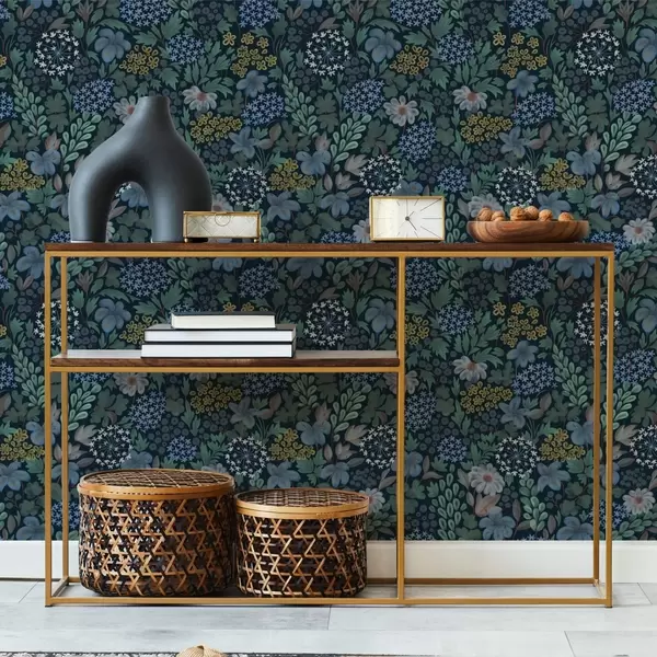 Tapety Nocny ogród z niebieskimi liliami, jagodami i dziką zielenią Nr. a00996