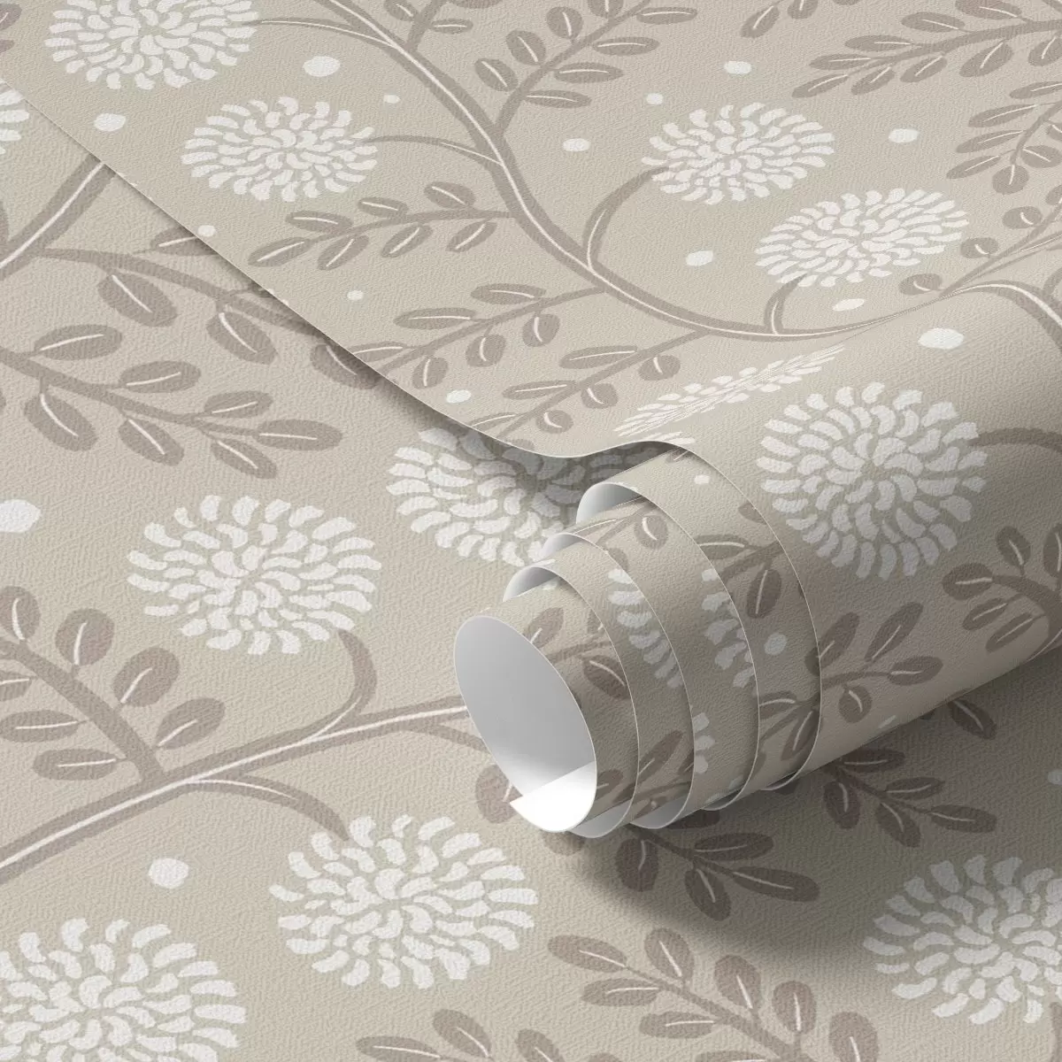 Tapety Beżowe łodygi z białymi puszystymi kwiatami i delikatnymi kropkami Nr. a00997