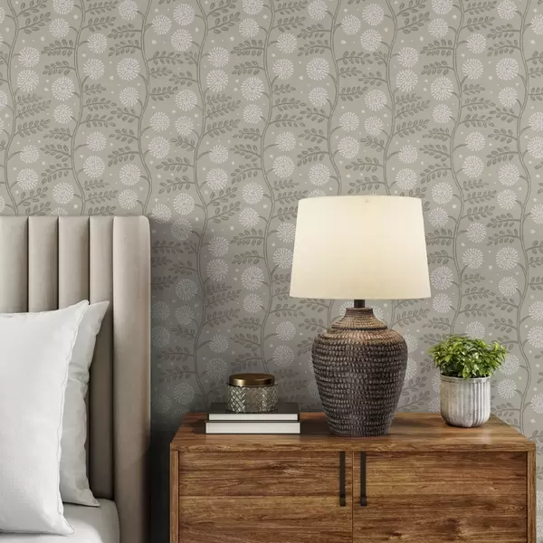 Tapety Beżowe łodygi z białymi puszystymi kwiatami i delikatnymi kropkami Nr. a00997