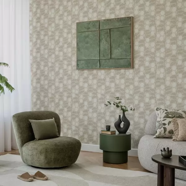 Tapety Beżowe łodygi z białymi puszystymi kwiatami i delikatnymi kropkami Nr. a00997