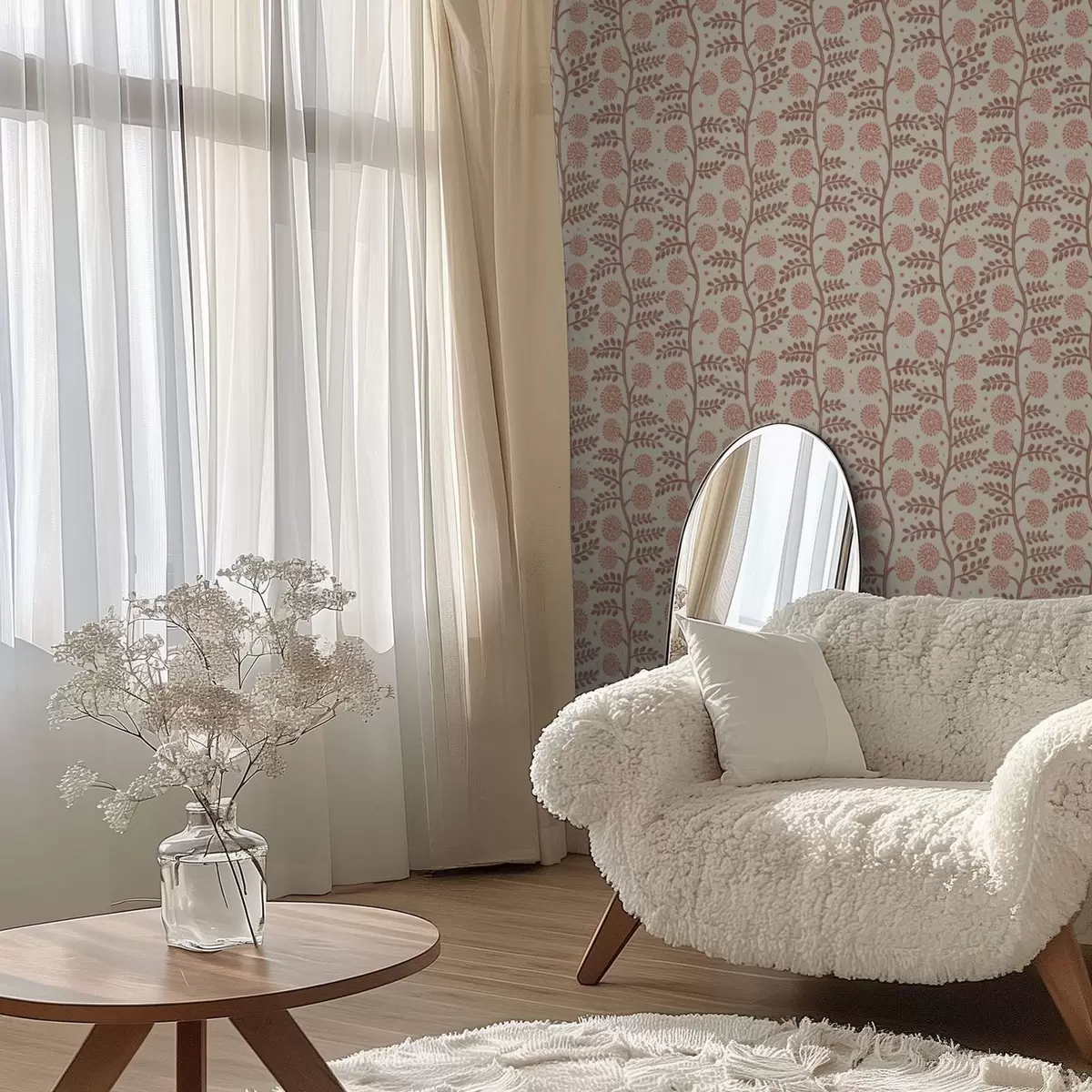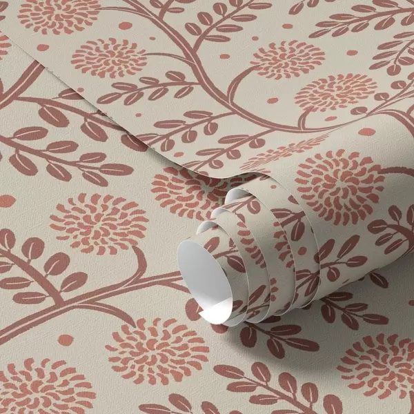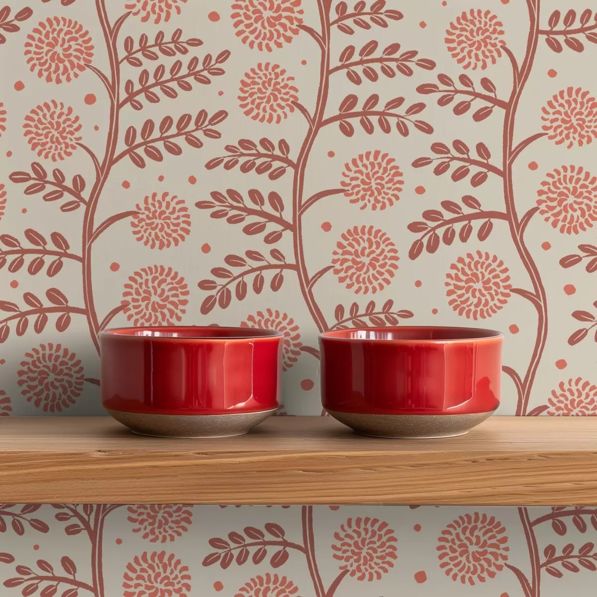 Tapety Terakotowe łodygi z puszystymi kwiatami w kolorze koralowym na kremowym tle Nr. a00997v1