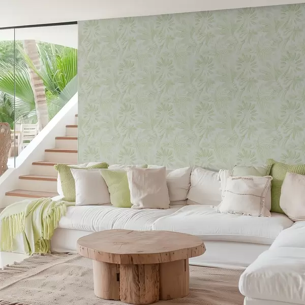 Tapety Naszkicowane tropikalne liście w świeżych jasnozielonych odcieniach Nr. a01001v1