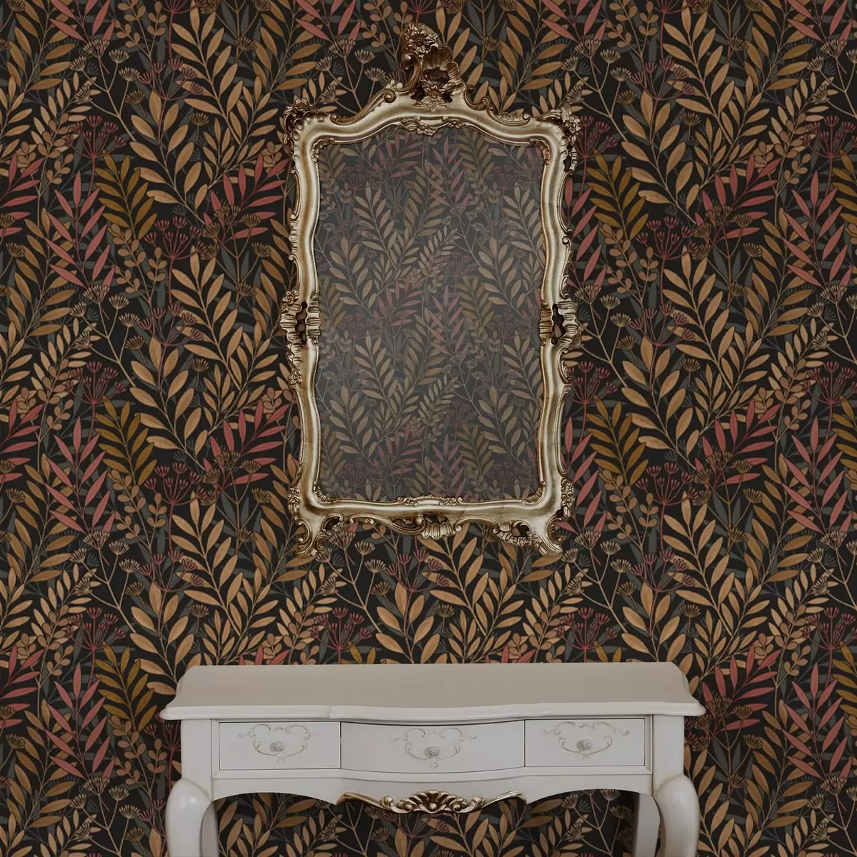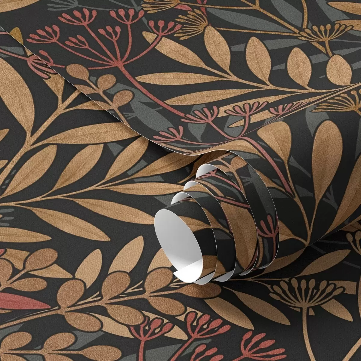 Tapety Ciemna łąka ze stylizowanymi liśćmi i strąkami nasion Nr. a01020